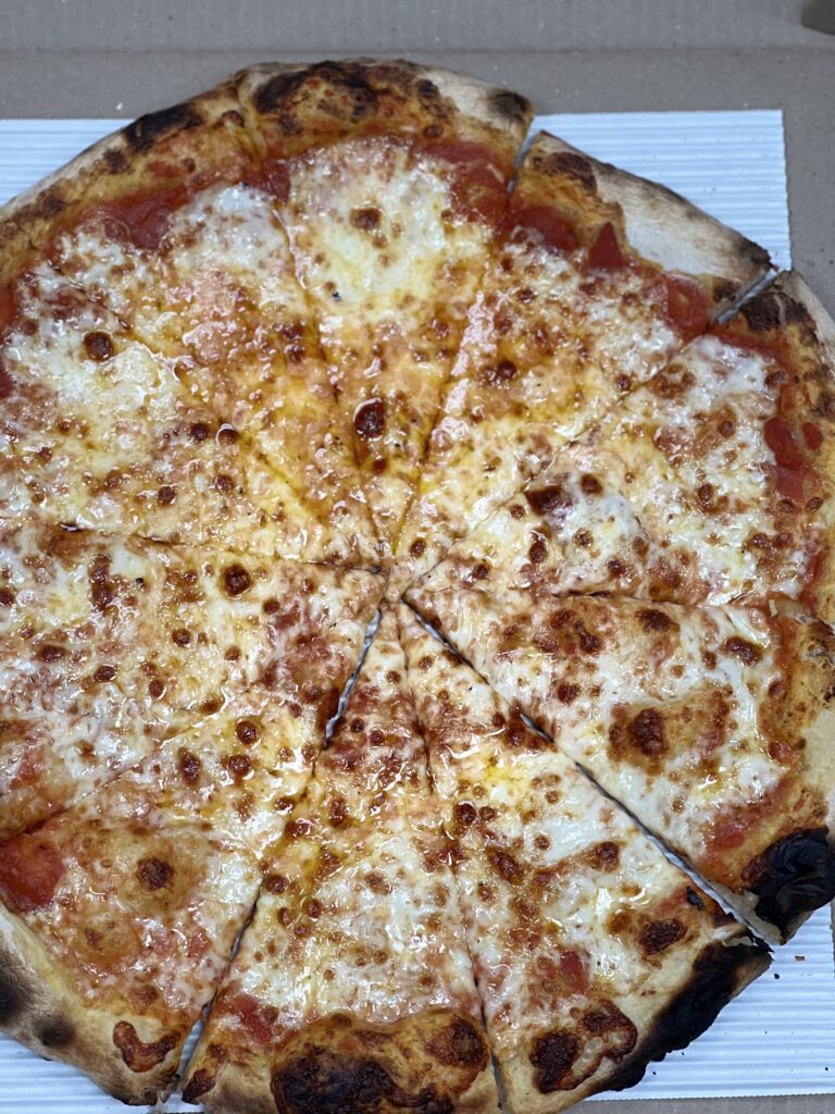 Keep It Super Simple - Our Cheese KISS Roots Wood Fire Pizza. Made with our house made sour dough topped with Whole Milk Mozzarella, Parmesan House Tomato Sauce