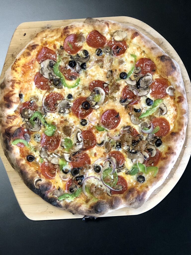We Upgraded the Classic Combo with our Delightfully Fluffy Crust, Whole Milk Mozzarella, Parmesan, House Made Tomato Sauce, House Made Pork Sausage, Boars Head Pepperoni, Cremini Mushrooms, Red Onion, Black Olives & Green Pepper.